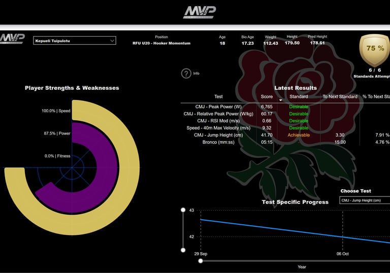MVP changed how we monitored and understood player wellbeing across the programme. The platform gave us consistent, reliable insight into how players were coping, allowing staff to spot trends early and have better conversations at the right time. It strengthened day-to-day decision-making and helped embed a more joined-up, athlete-centred approach to wellbeing.